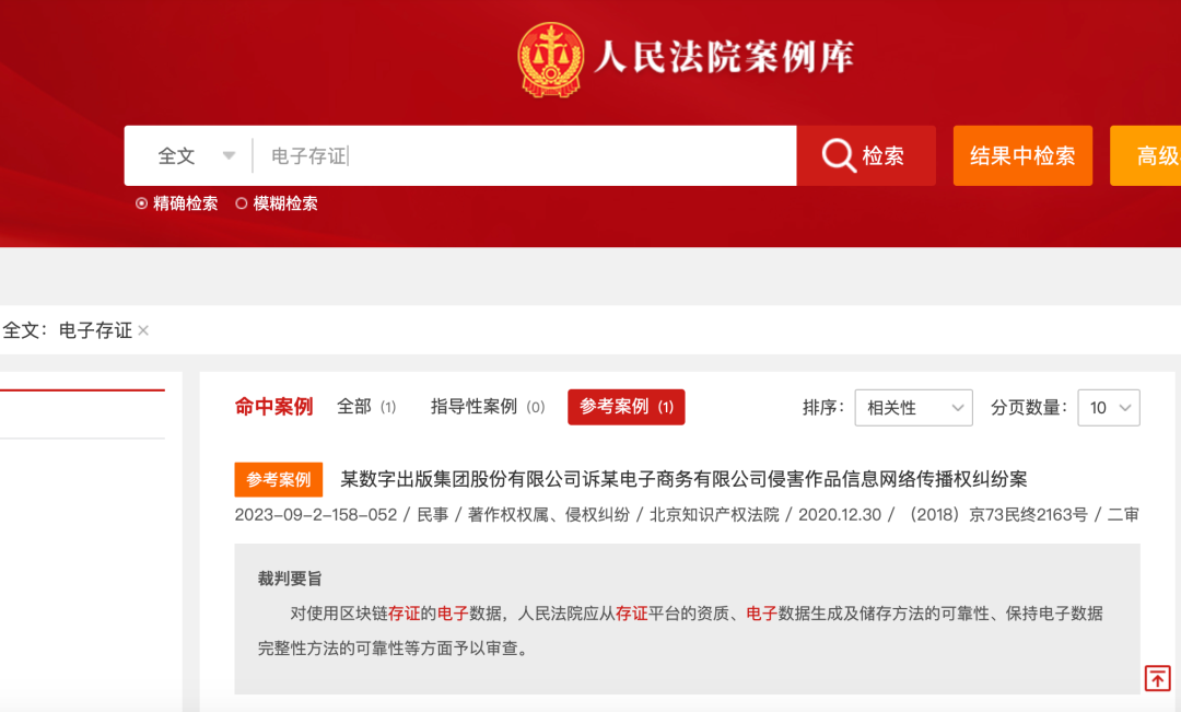 在已公布的案例中,IP360唯一入选电子存证参考案例(区块链电子存证的司法认定, 入库编号2023-09-2-158-052).
